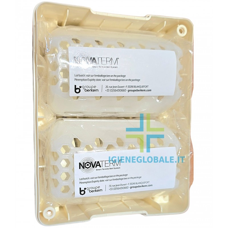 Contenitori di trappole con esca per termiti compresa: TERMIGARD PLUS. Sono dei contenitori in plastica con dentro l'esca per termiti. Sono adatti a inserire la suo interno la cellulosa avvelenata.
