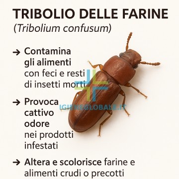 Attrae in trappola gli individui di ambo i sessi di Tribolium castaneum e di Tribolium confusum.