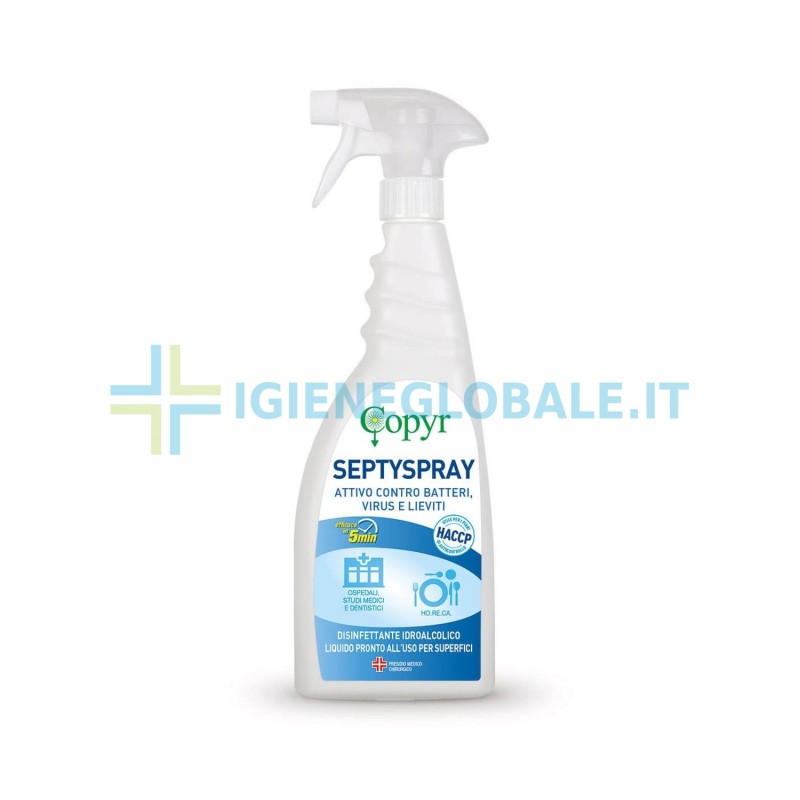 Garantisci la massima sicurezza alimentare nella tua cucina professionale con Septyspray, il disinfettante idroalcolico Presidio Medico Chirurgico indispensabile per il rispetto rigoroso del piano di autocontrollo HACCP. Formulato specificamente per l'abbattimento rapido di cariche microbiche e patogeni critici nel settore Ho.Re.Ca, come Salmonella e Listeria, questo prodotto assicura un ambiente di lavoro sterile e conforme alle normative vigenti.