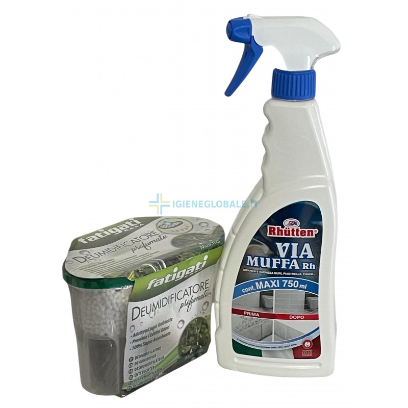 Questo kit offre un doppio approccio al problema della muffa in bagno: cura immediata e prevenzione futura. Combina l'efficacia di un mangiaumidità ai sali (per asciugare l'aria) con la potenza di uno spray antimuffa al cloro (per sbiancare le superfici).